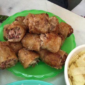 grilled pork crab rolls rice noodlesIt was delicious of course, like my mother in law says, “mura na, madumi pa” (cheap and filthy). She was so grossed out by the place that even though the food tasted great, she only ate a little. Funny thing was, it blacked out the moment we started eating. It was so hot and dirty and packed with people and even though its the most famous here I’m never eating here again. Ever.