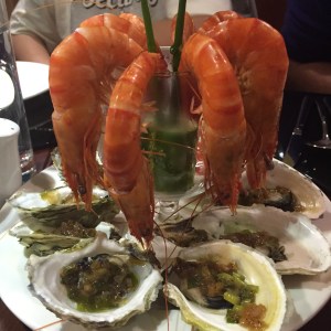 shrimp roll and breaded squid chicken and mushroom egg soup mango salad grilled shrimp with tartar sauce opera cake fresh oysters and shrimps sea bass curry light breakfast 😉 seafood pasta and fried squidOn our last night, we went to the famous Halong Bay. We boarded the Bhaya Cruises for our overnight cruise. In fairness, almost all foods were great, the taste somewhat caters to the foreigners, which was all the better for me.